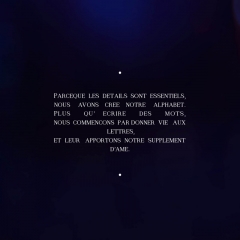 Alphabet Parce que les détails sont essentiels, nous avons créé notre alphabet. Plus qu’écrire des mots, nous commençons par donner vie aux lettres, et leur apportons notre supplément d’âme. Conception, Création & Réalisation Typographie, Logo, Identité visuelle Direction artistique Related Posts VIDEO : Interview de Valerie Vais samedi 24 juin 2017